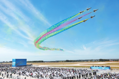 9月23日,为期5天的第十一届空军航空开放活动和长春航空展在长春闭幕。自19日以来,超音速战机高速飞行产生的脱体涡流和表演机拉出的道道彩烟,共同点染长春上空。回顾这次活动,既有专业飞行,又有温暖时刻,一个个精彩画面令人难忘。